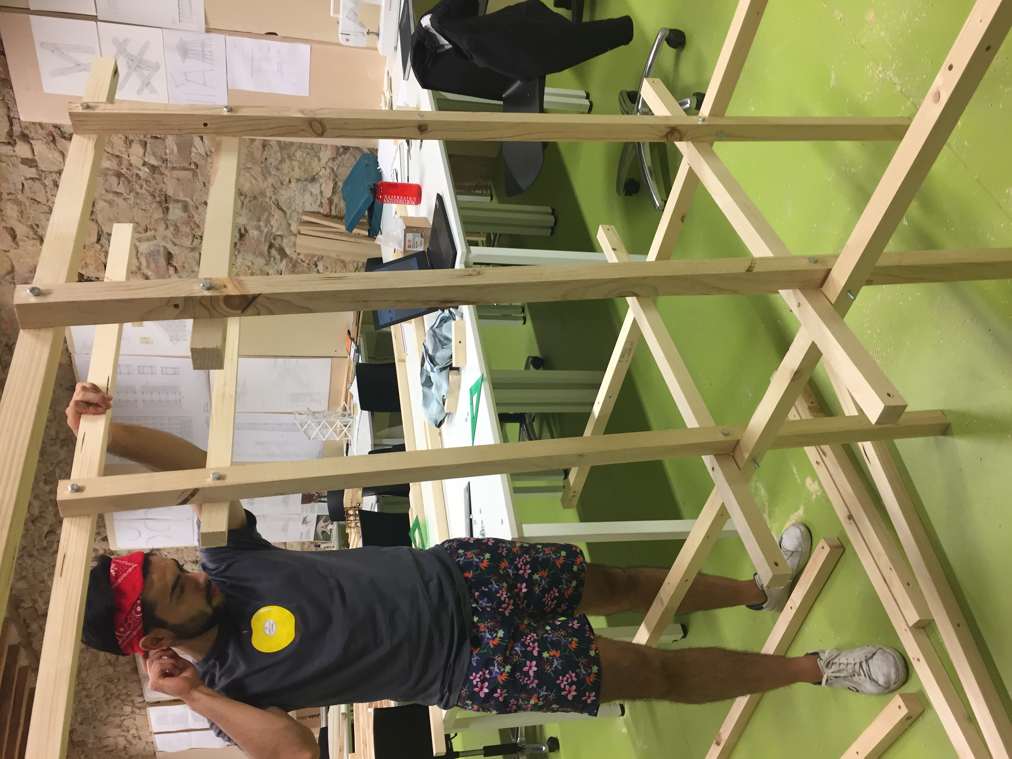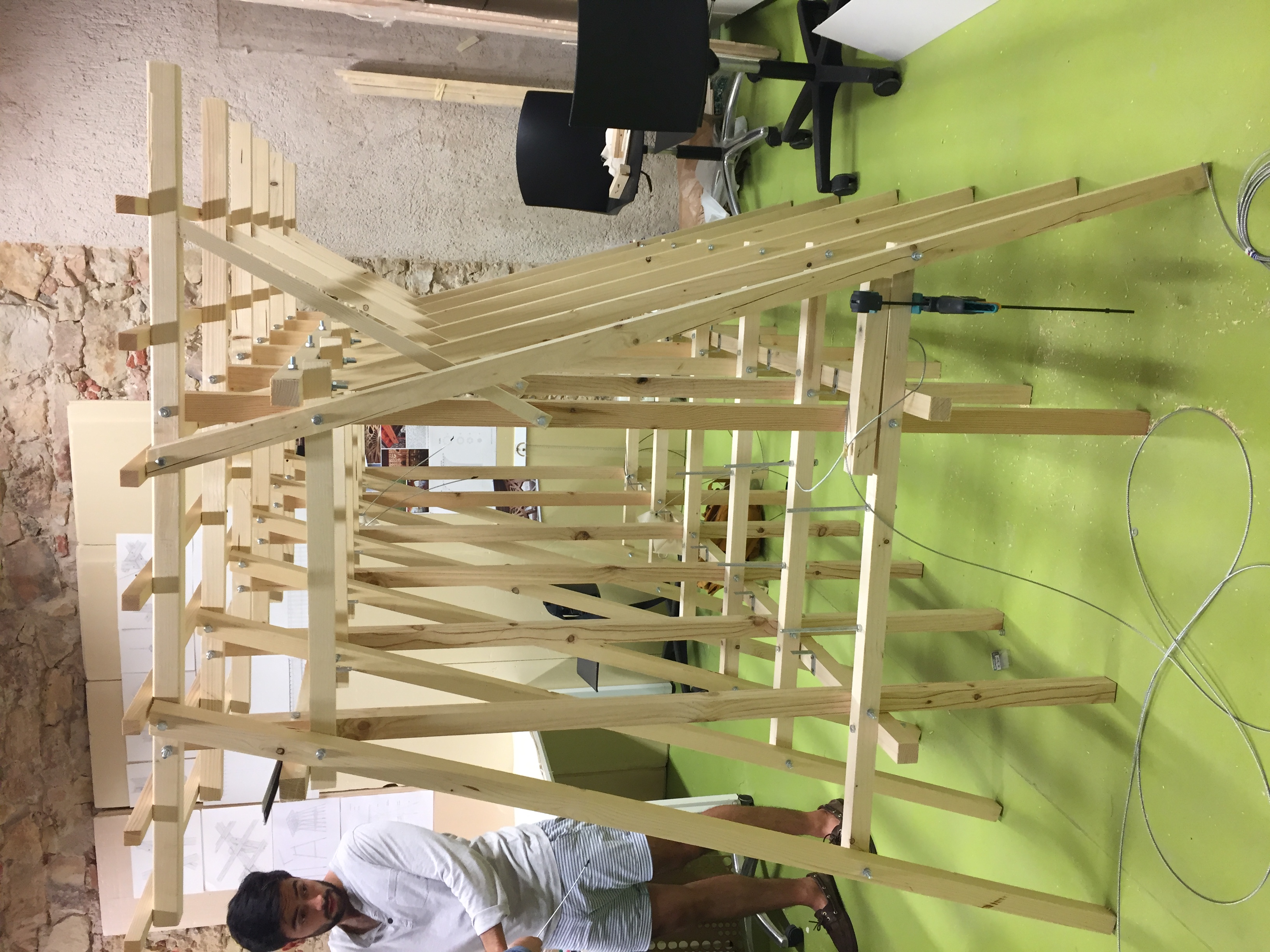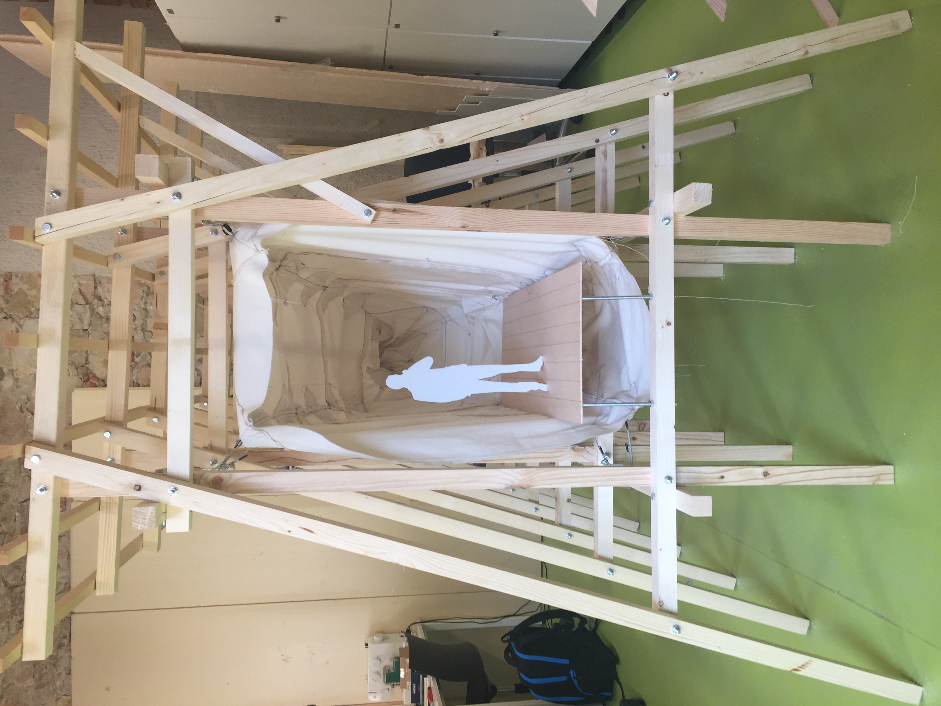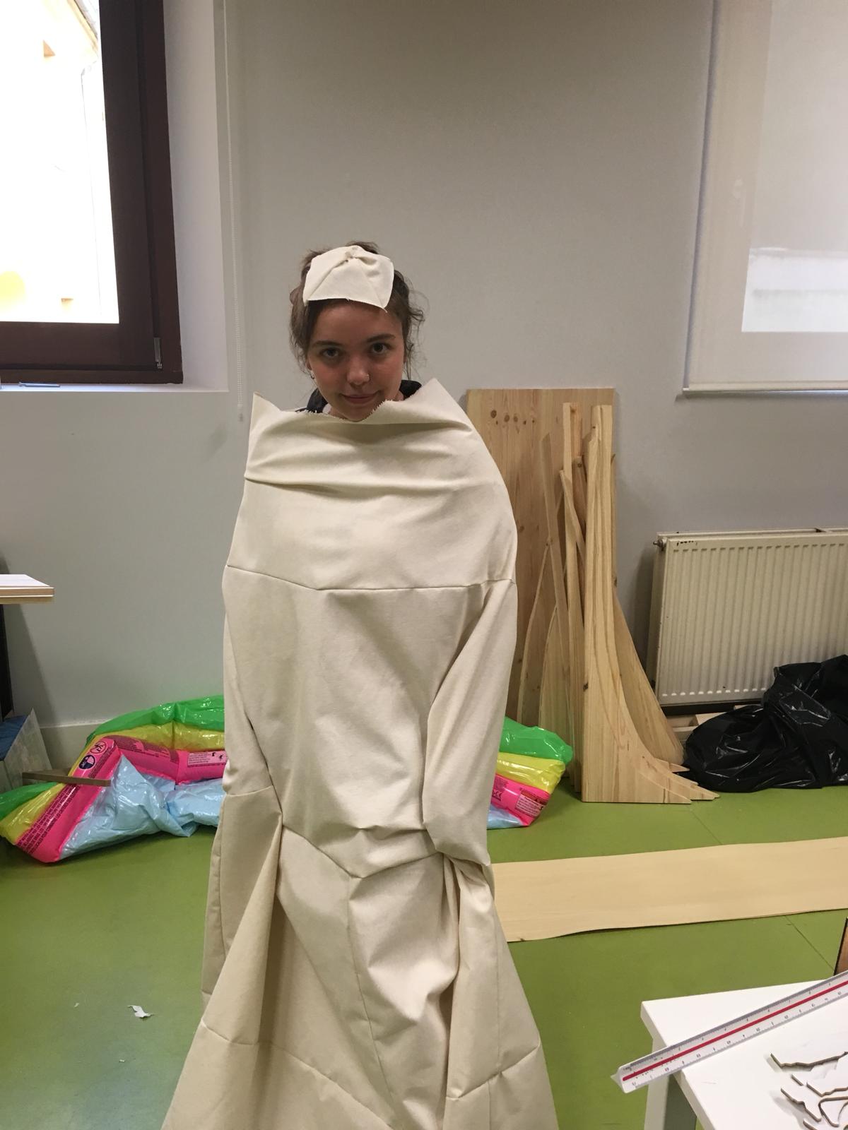 Composed of wood, cloth, and steel wire, this model was constructed from scratch over a period of two weeks using tools from the IE University woodshop. I was responsible for modeling the structure in Rhino, assisting in cutting and assembling the wooden frames, and sewing the entire cloth piece.